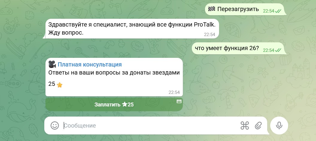 Самый легкий и быстрый метод — настройка оплаты за конкретные услуги прямо через текстовый промпт бота.